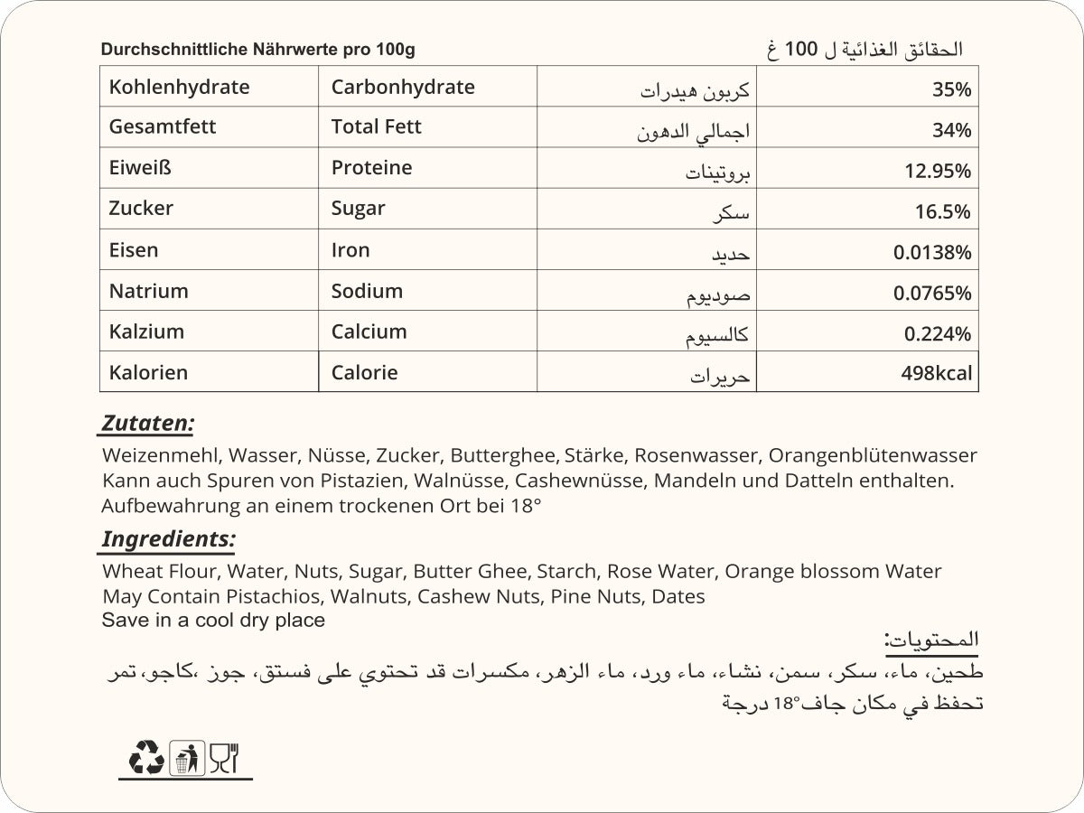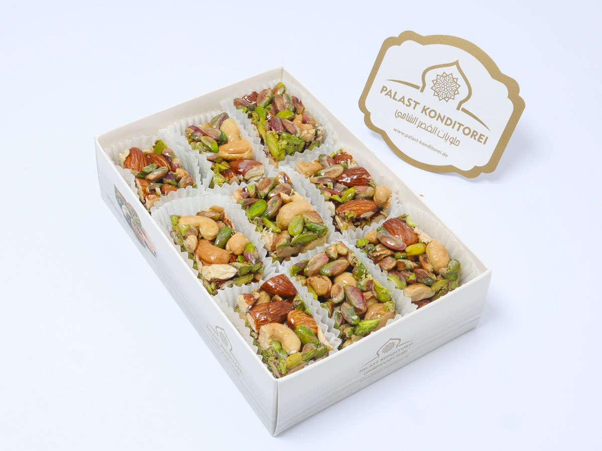 Knusprig geschichteter Teig, gefüllt mit edlen Nüssen – fein abgestimmt und angenehm aromatisch. Perfekt zu Kaffee oder Tee, zum Teilen oder für deinen eigenen Genussmoment.